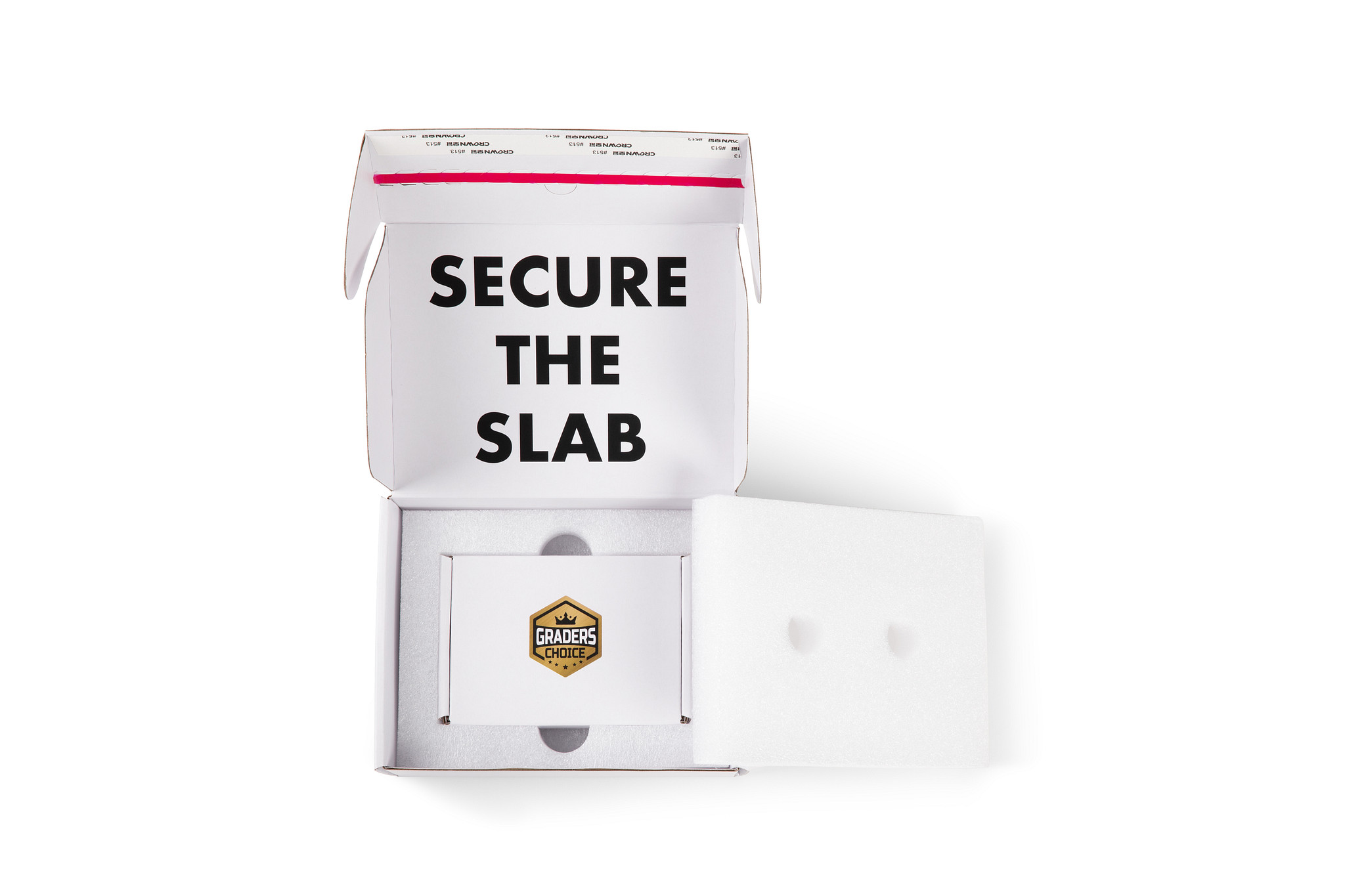 We include a clear adhesive sticker for attaching your grading submission barcode to the outside of the box, helping meet PSA and other grading company packaging requirements.